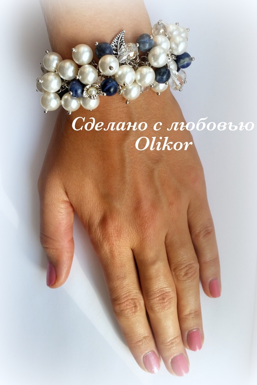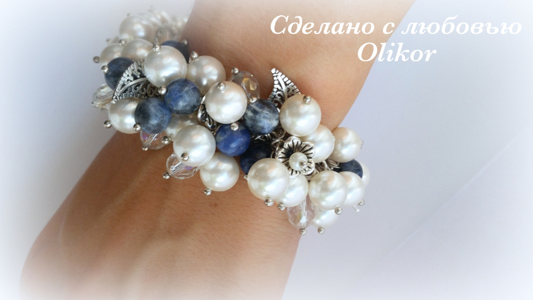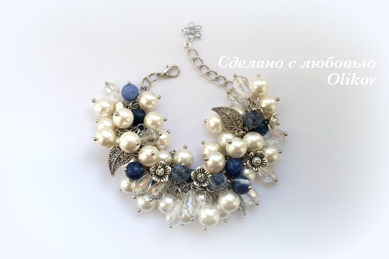 Браслетик из садолита, жемчуга Майорка, стеклянных бусин с огранкой получился нежный, романтичный и так напоминает зиму!