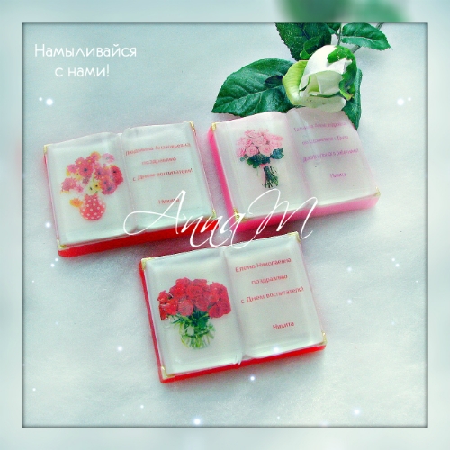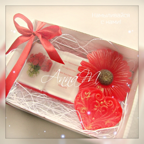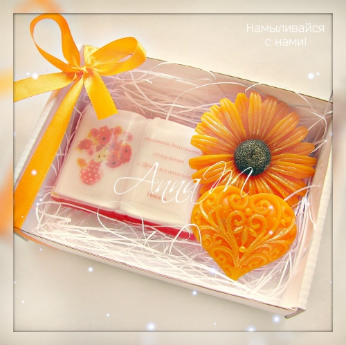 3.Изящные наборчики из трех кусочков мыла- "Книга","Гербера" и "Сердечко".