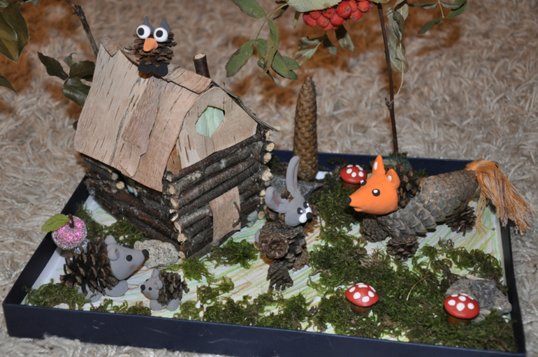 Лида, супер!!! Ежик с яблочком и ежонком просто расчудесный! Сколько труда в избушку вложили, молодцы! Мы тоже в сад пошли, только пока у нас ничего не просили из поделок. На твою работу посмотрела и решила, что сделаем сами и принесем. А вы прям обычный пластилин использовали или массу для лепки застывающую?