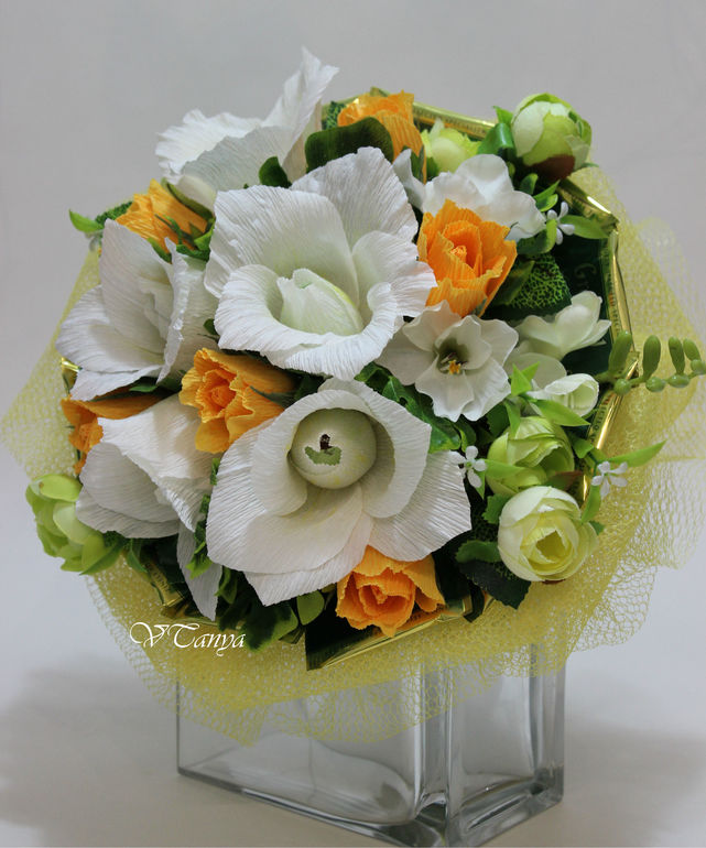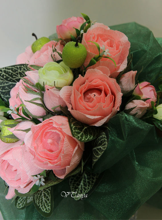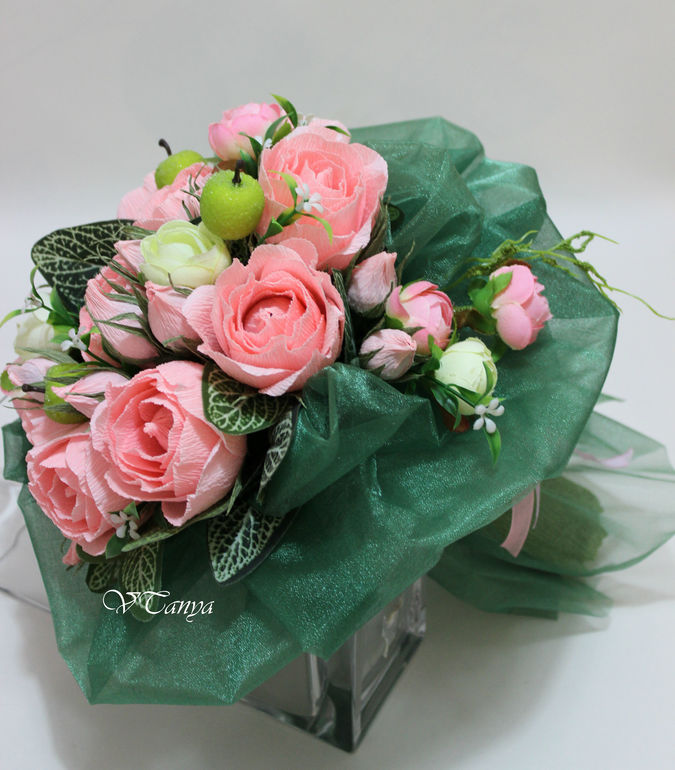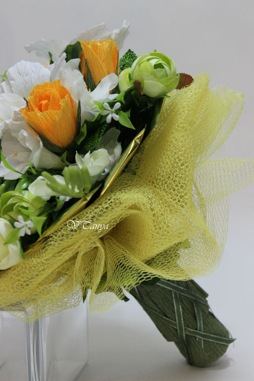 Танюш, молодец! И красиво и нестандартно ))) Первый букетик оригинально упаковала.