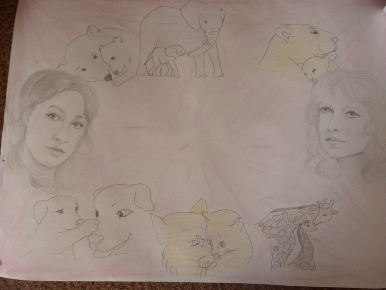 На втором плакате подруга запланировала стихотворение о материнской любви к дочерям, и мамы с детёнышами как бы отражают его)) это её задумка))