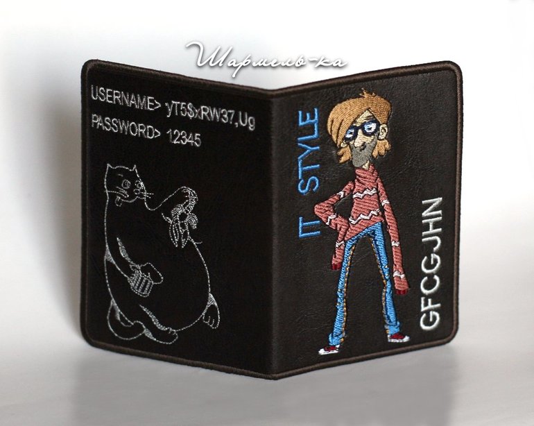 Вышивка выполнена вискозой на экокоже. Внутри обложки кармашки с фигурным краем из иск.кожи в тон верха.
