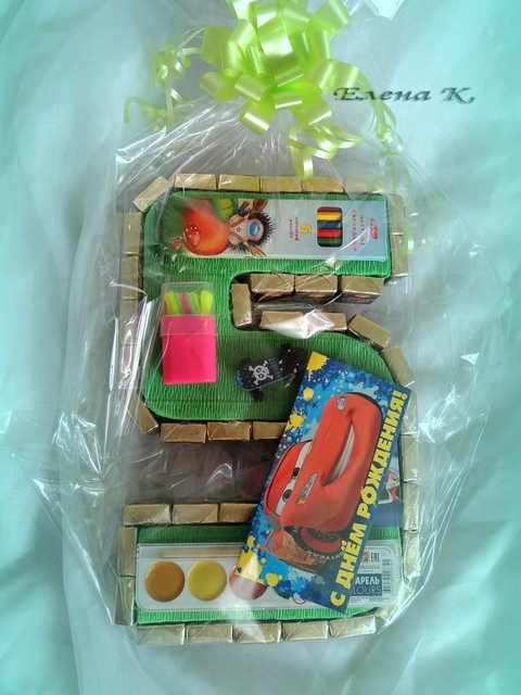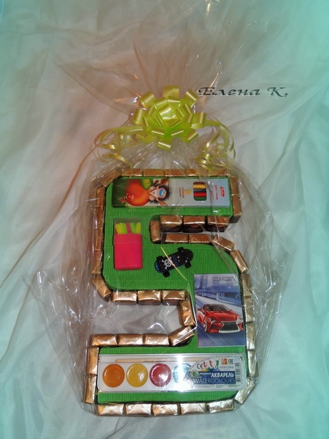 Здорово придумано цифрой! Интересно, что в основе пятерки? Краски и карандаши приклеены?