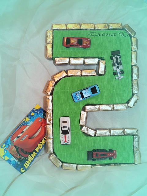А вот и моя первая цифра на 5-летний юбилей крестнику. Только вот обратная сторона уже не 5, но все равно, чтобы не пустовала налепила туда машинок