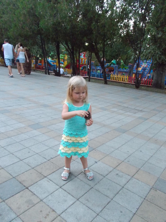 Красивенькое платье, и дочка тоже))) а подскажите из чего вязали?