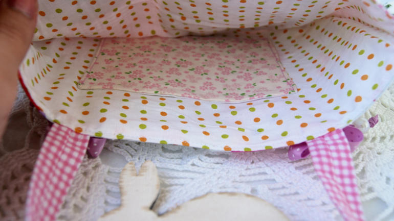 У сумки горошковый весёлый подклад и маленький кармашек :)