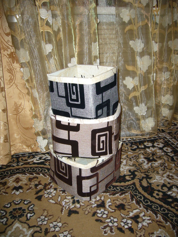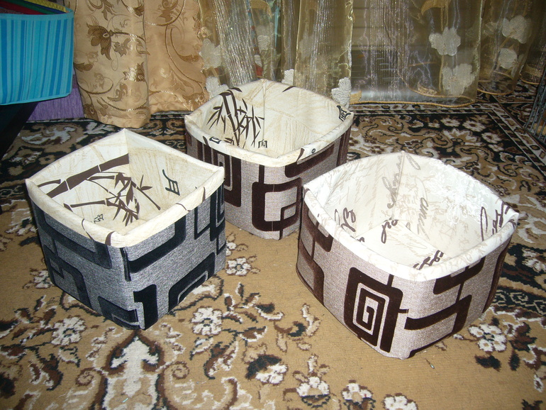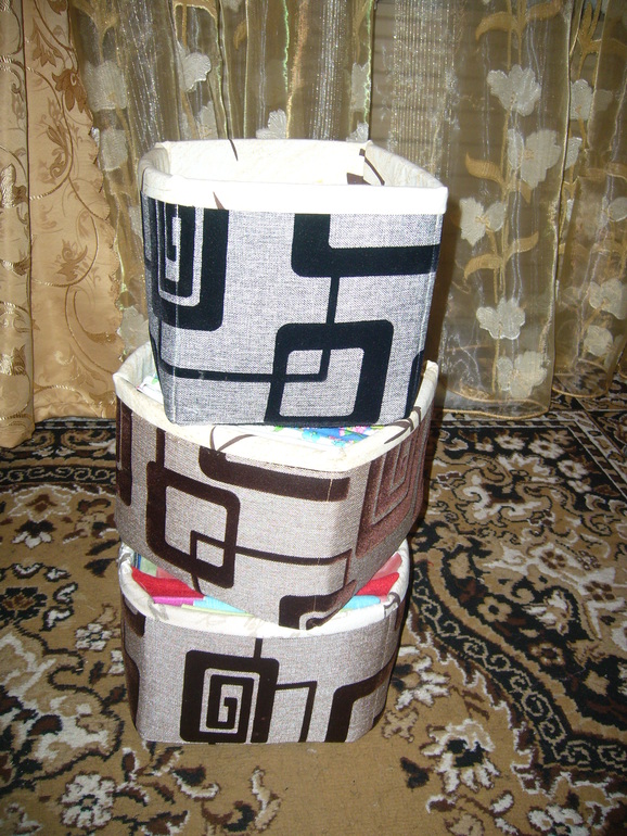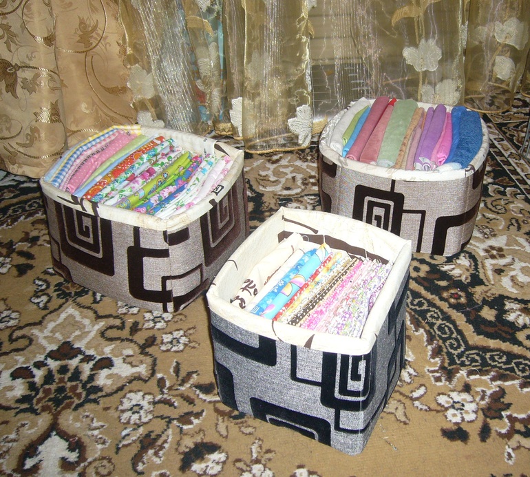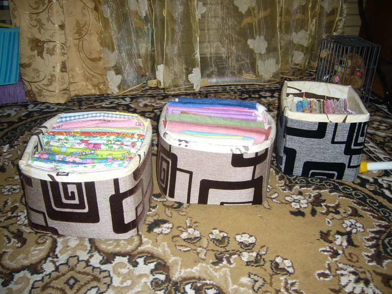 Мой рабочий уголок, запасы, инструментыЯ снова с ними)))Короба для хранения рукодельных принадлежностей.Я в них храню тканьки. Очень удобно))) Можно также приспособить под игрушки. Между двумя слоями ткани проложен изолон ,для придания формы коробкам. Смотрим