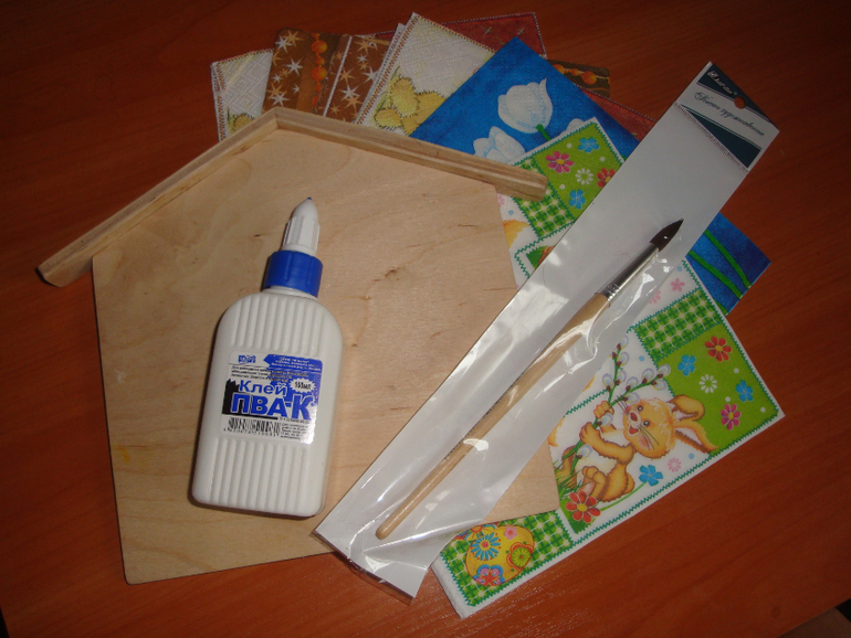 Описание: Набор для декупажа: заготовка из фанеры "ключница", клей ПВА, набор салфеток для декупажа (6 шт.), кисточка из шерсти пони.