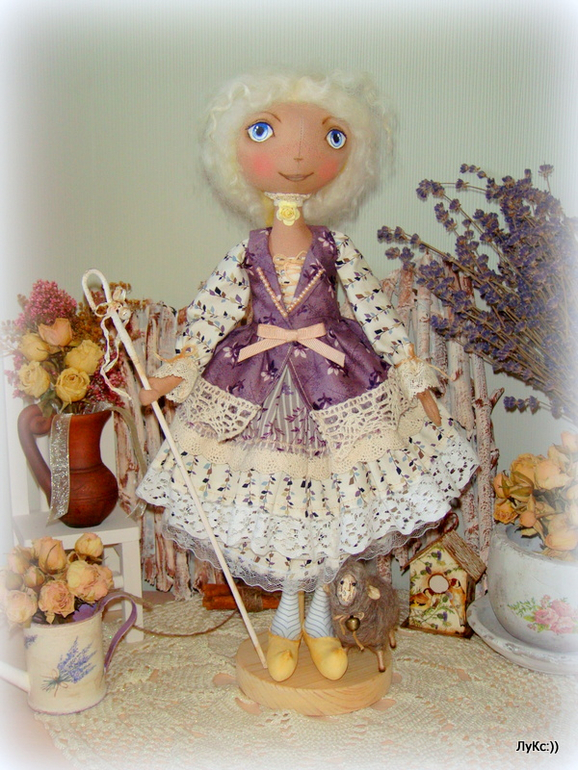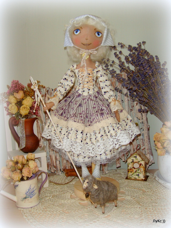 Суперская Пастушка!!!! И ягненок прекрассный!!! Наряд и вообще всю композицию можно разглядывать часами, до чего же все продумано! А какое все рукодельное и милое... плетень, задекупаженная леечка, стульчик, сушеная травка... Прелесть!!!
