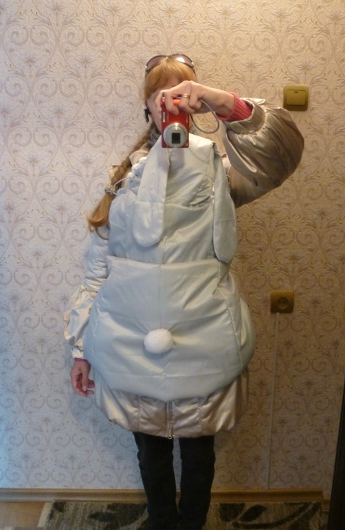 Так как в нашем городе найти красивую ткань это проблема... сшила из обычной плащевки и пропиткой. Внутри тоже обычный синтепон (был у меня кусок иглопробивного) и флис на подклад. Флис использовала из домашних запасов - поэтому коричневый внутри и белый в капюшоне))) что было))))