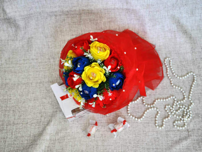 Заказали мне повтор моего флешмобовского букета... Мне он совсем был не по душе, и даже во время его изготовления я разболелась. Сегодня я вручила букет его новой обладательнице. И теперь весь вечер нахожусь в эйфории от этой девушки. Настолько она меня впечатлила! От нее, буквально, шла волна позитива, эмоций, какого то драйва! И мир вокруг кажется добрее! Желаю всем таких заказчиков и побольше. А вот ее букет