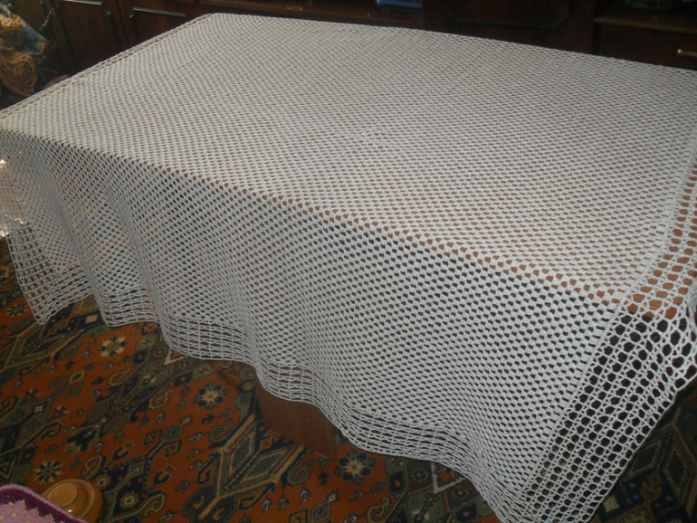 И МЕГА-СУПЕР-ЧУДО скатерть!!!!!!!!! На ней я фотографировала все остальные подарочки!!!!!А чтоб показать её во всех красе воспользуюсь фотографиями самой Юли!!!http://www.babyblog.ru/community/post/rukodelie/3061233