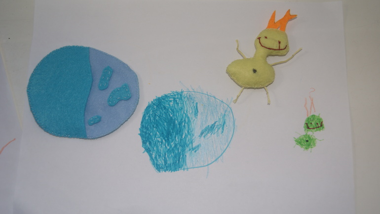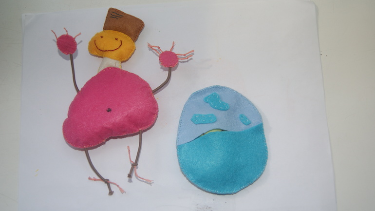 в начале появилась ибибота мама.(оранжевый цвет живота на розовый, дочка поменяла сама по ходу подбора фетра)