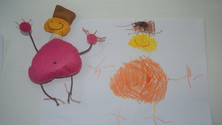 Поделки с детками.дочка уже месяца 3 ходит по квартире и поет песенку: Кто такая Ибибота...долго пыталась выяснить как же она выглядит и на что похожа. в итоге вчера дочка ее нарисовала а я сшила из фетра.
