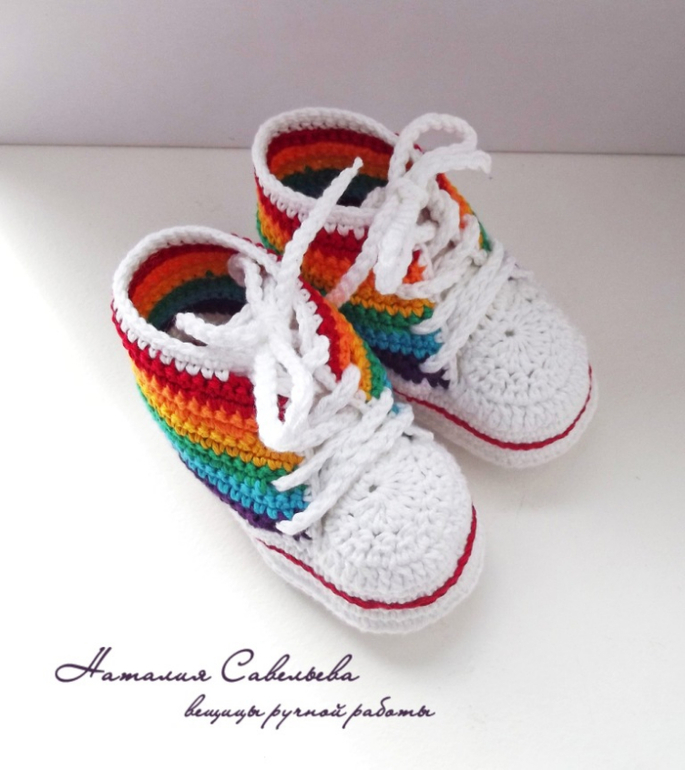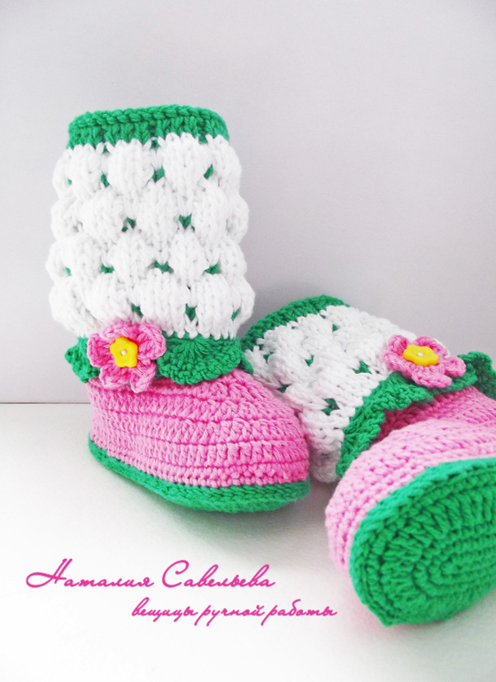 спасибо))) нет, схемки у меня нет, сама придумала — ботинок связан крючком, а голенище — спицами)