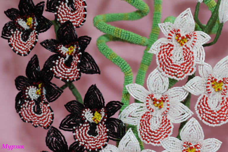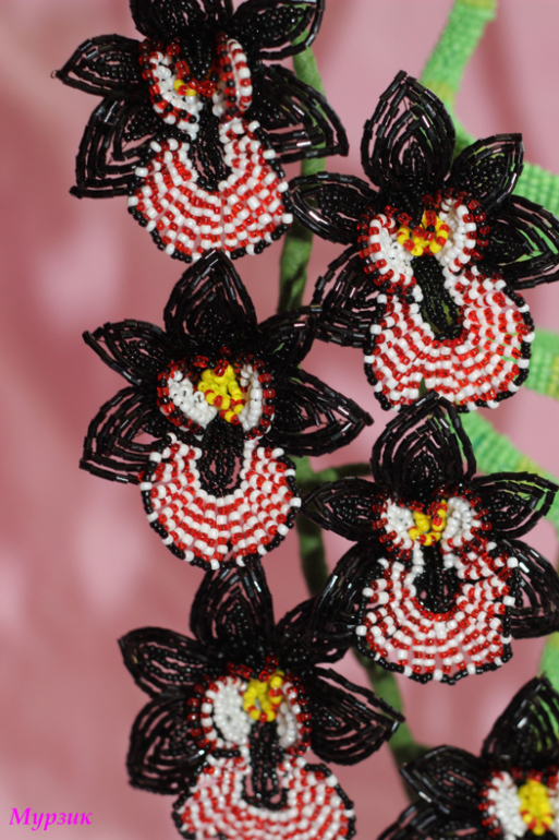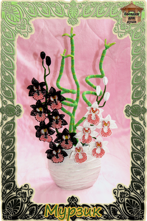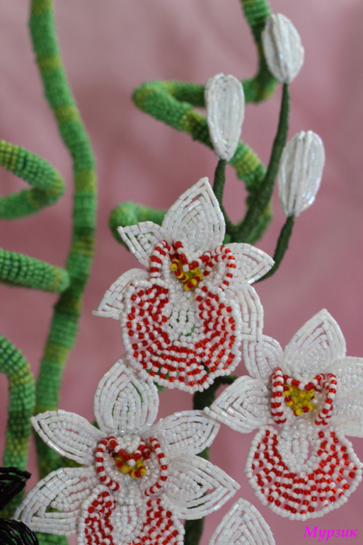 Бисер. Бисероплетение. Украшения из бисера.Композиция "Цимбидиумы с бамбуком" выполнена на форуме "Беседка для души" под руководством Selena-s