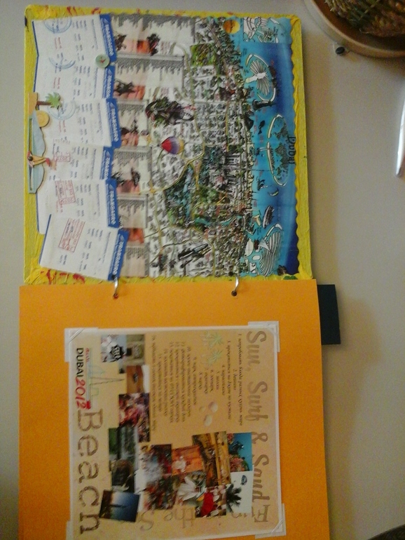 первый разворот заняла карта Дубая, список дел обязательных в отпуске в этом городе и авиабилеты.