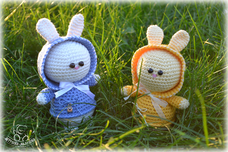 Амигуруми (вязаные игрушки)У зайчиков ушки торчат на макушке,