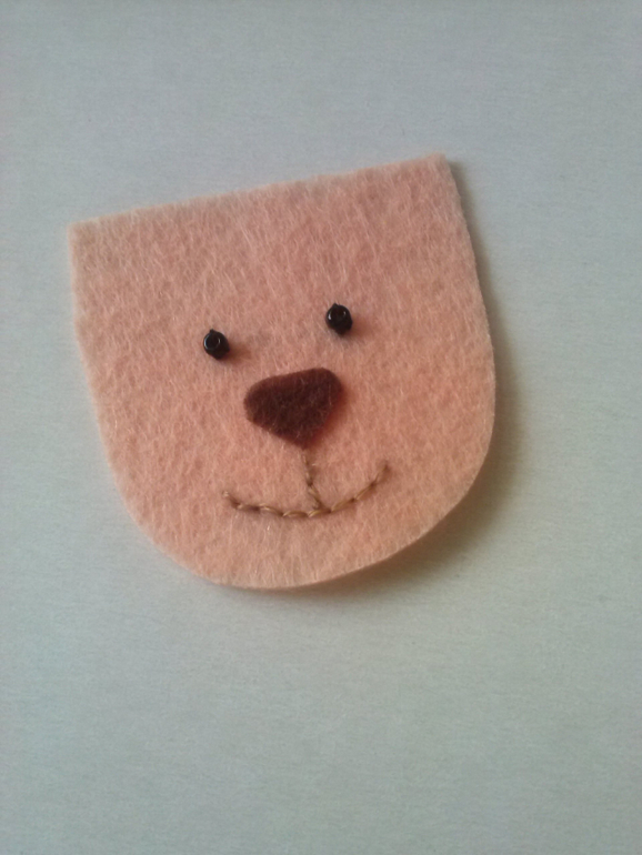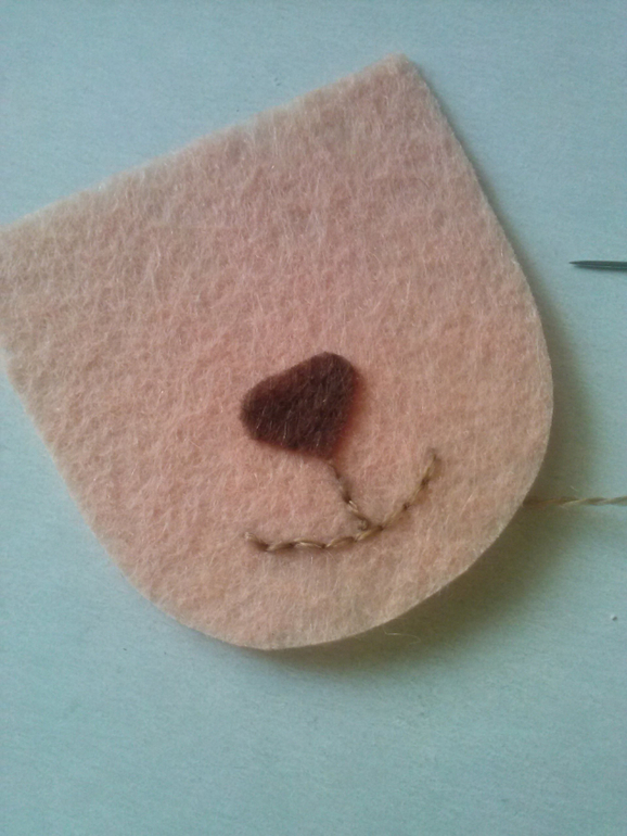 Шьем голову, сначала вышиваем лицо, глазки бисеринки, носик можно посадить на капельку клея и зафиксировать стежками, вышиваем ротик швом "назад иголка".
