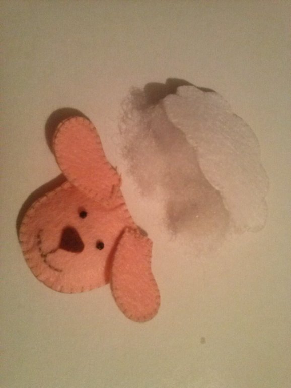 Далее сшиваем голову, оставляем сверху дырочку и не плотно набиваем синтепоном. Пришиваем ушки по краям двумя стежками.