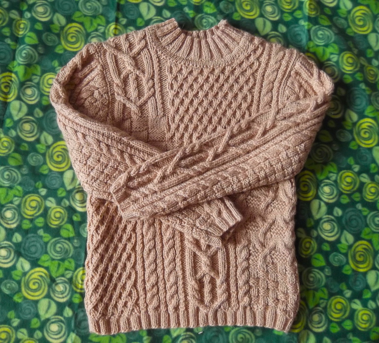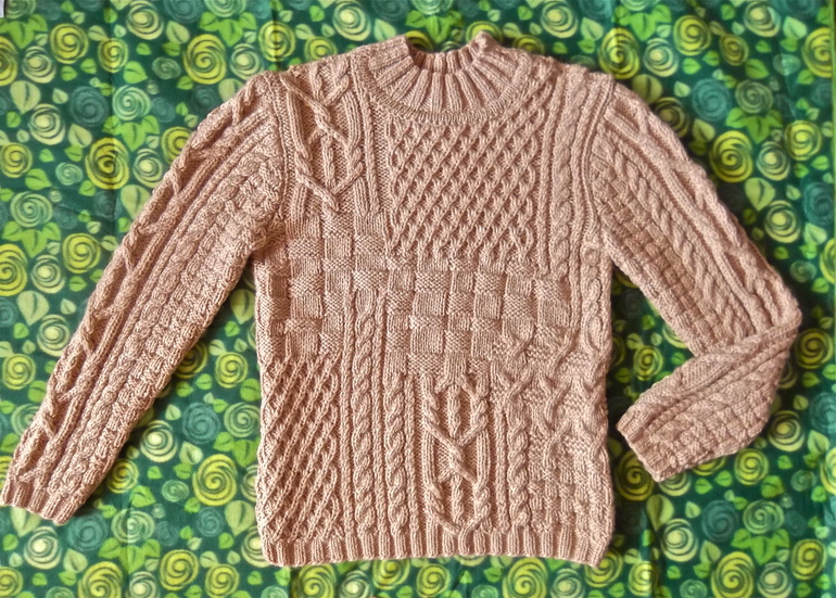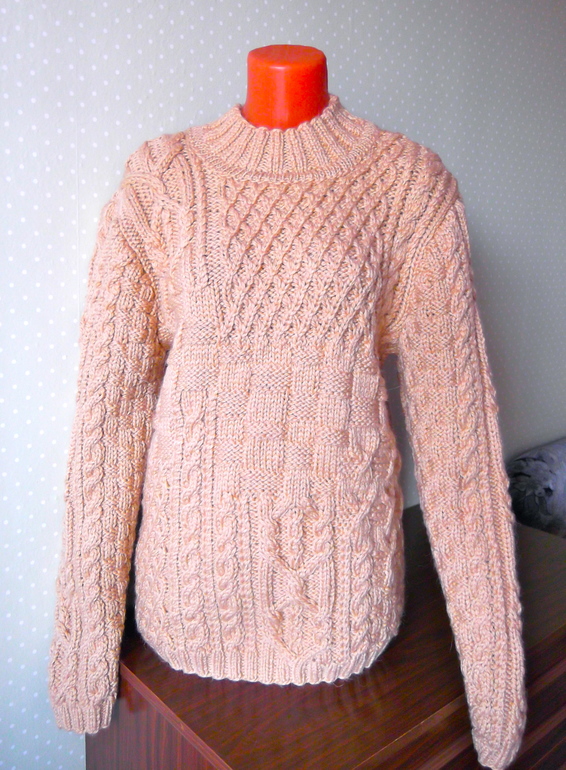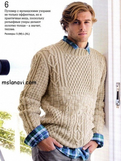 Вот такой получился мужской пуловер. Пряжа Троицкая "Мелодия" 100г/100м. Цвет песочный. Оригинал ниже...