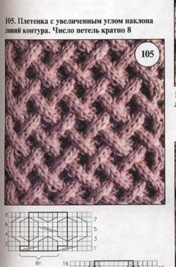 1 р.-3 изн.,2 лиц.п.перек.на право с двумя лиц. п.(снять 2 петли на запасную спицу,поместить за работой,провязать 2 петли лиц.,затем провязать 2 петли на запасной спице лиц.).,4 изн.,2 лиц.п.перекр.на право с двумя лиц.п.,3 изн. 2ряд-3 лиц.,4 изн.,4 лиц.,3 изн. 3ряд-1 изн.,2 петли перекрестить на право с двумя изн.п.(2 п.снять на запасную спицу,поместить за работой,провязать 2 п.лиц.,2 петли с запасной спицы провязать изн.).,2 лиц. п.перекрестить налево с двумя изн.п.(2 п. снять на запасную спицу и оставить перед работой,провязать 2 п.изн,2 п.с запасной спицы провязать лиц.).,2 петли перекрестить на право с двумя изн.п.,2 лиц. п.перекрестить налево с двумя изн.п. 4ряд-1лиц.п.,2 изн.,4 лиц.п.,4изн.п.,4лиц.п.,2 изн.п.,1лиц.п. 5ряд-1изн.,2лиц.п.,4изн.п.,2п.перекрестить на лево с двумя лиц.п.(2п.снять на запасную спицу и оставить перед работой,провязать 2 лиц.п.,2 петли с запасной спици провязать лиц.).,4изн.п.,2 лиц.,1изн.п. 6ряд-1лиц.п.,2изн.п.,4лиц.п.,4изн.п,4лиц.п.,2изн.п.,1лиц.п. 7ряд-1изн.п.,2 лиц. п.перекрестить налево с двумя изн.п.,2 петли перекрестить на право с двумя изн.п.,2 лиц. п.перекрестить налево с двумя изн.п.,2 петли перекрестить на право с двумя изн.п.,1изн.п. 8ряд-3лиц.п.,4изн.п.,4лиц.п.,4изн.п.,3лиц.п. вроде как могла обьяснила.если что не понятно,пишите.