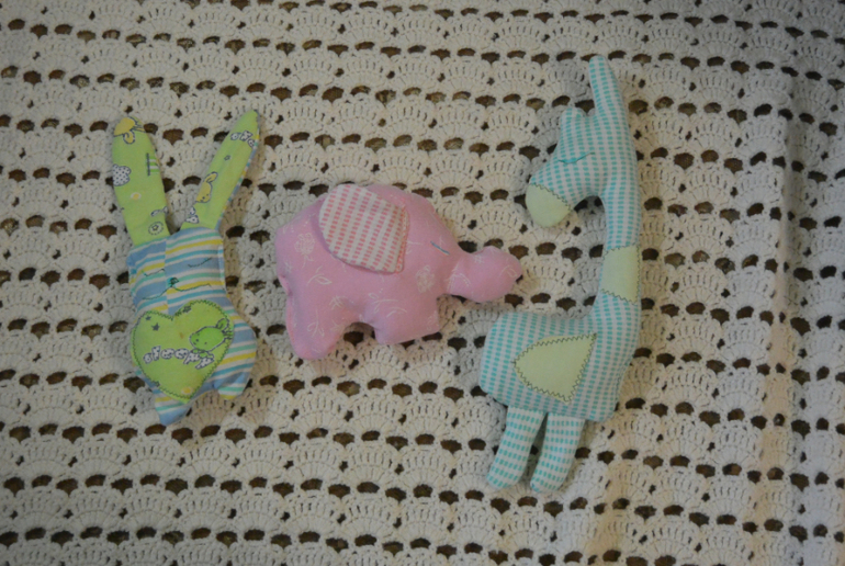Когда-то давно я решила, что сошью из детских вещей несколько игрушек, чтобы дать им новую жизнь. И вот я сделала это! Игрушки сразу полюбились моим малышам, и были уложены в кроватки с ними спать:)