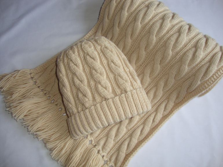 Шарф и шапка связаны из пряжи Mondial (Италия) Супервул, спицы №3.,косы 5*5