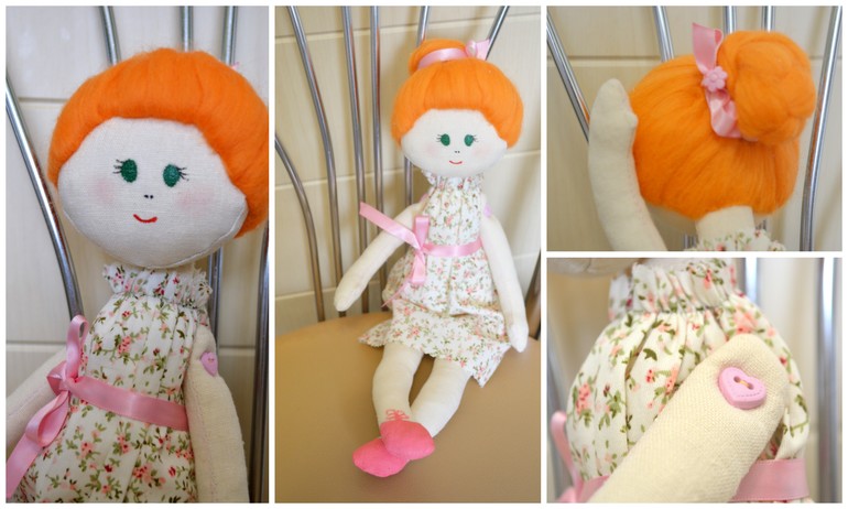 История этой куколки проста - у моего сынули в группе детского сада есть подружка Леночка. И, как-то на моих глазах она очень не хотела расставаться с мамой и сильно плакала сутра. Я ей пообещала, что если неделю она будет ходить в сад без слез - сошью куколку.