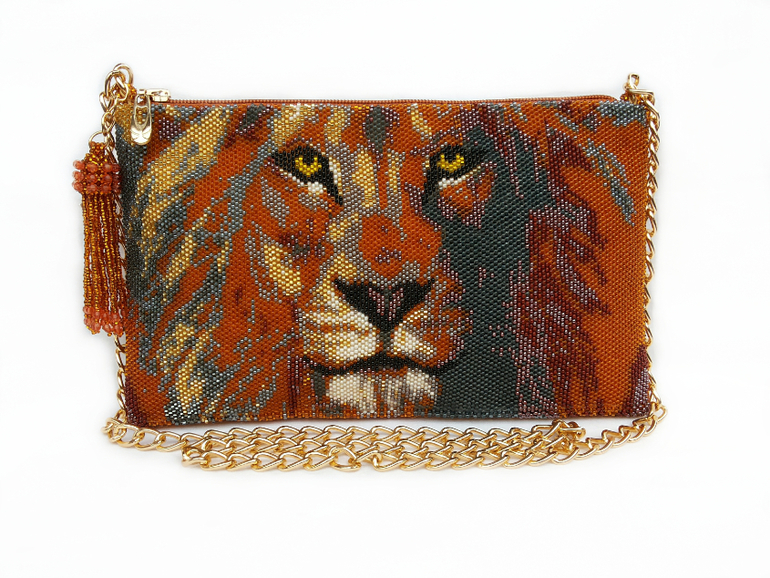 Бисер. Бисероплетение. Украшения из бисера.Сумочка "Lion King" сплетена из чешского бисера, внутри чехол из кожзаменителя с подкладкой. Размер 24х15см.