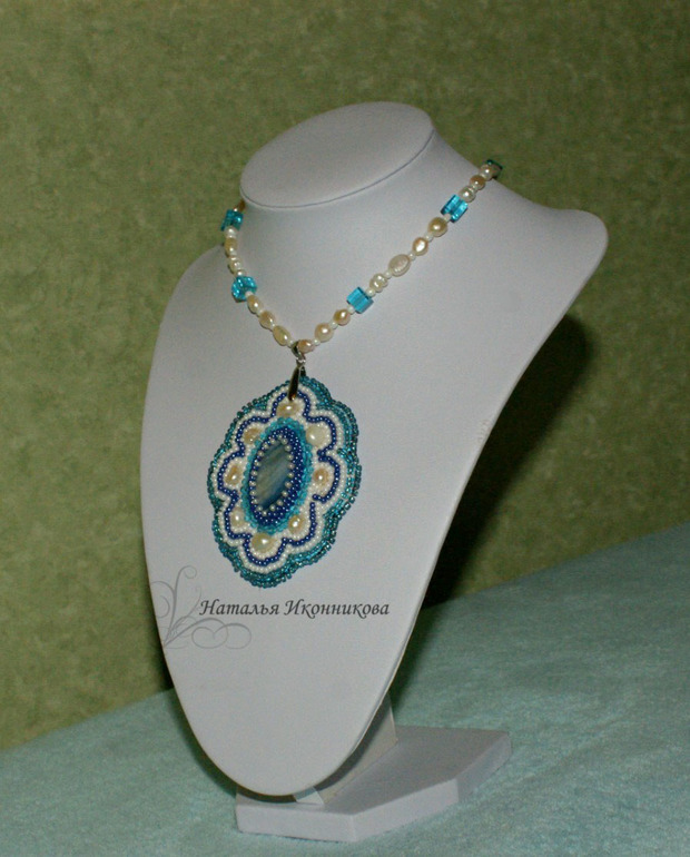 Бижутерия для слингомам. Слингобусы. Грызунки.Сделался у меня кулон еще в августе, некогда было показать, так вот еще у меня появился манекен, теперь все украшалки буду на нем демонстрировать. В кулоне использовала самые морские камушки-перламутр и речной жемчуг.