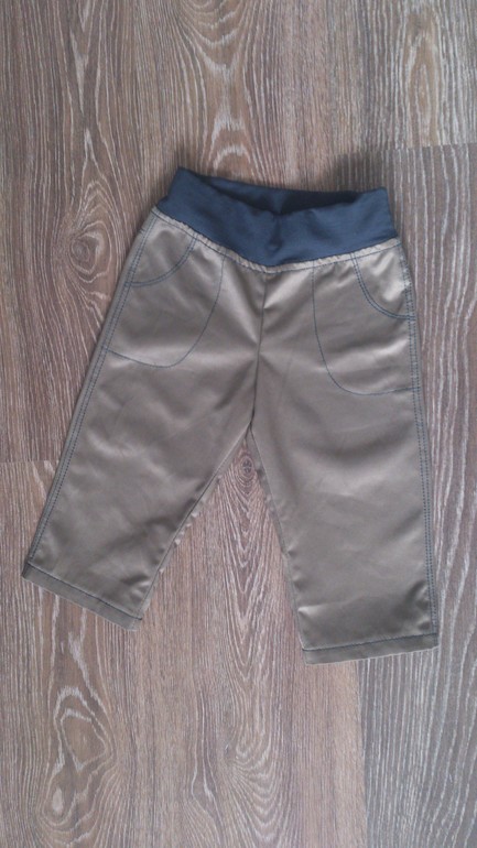 Штаны из хлопка плотного, не знаю как называются, по плотности как джинс, на поясе футер с лайкрой+резинка. Выкройка из Оттобре 6/2013. Отстрочку делала первый раз, нитка двойная, чтоб пожирней было).