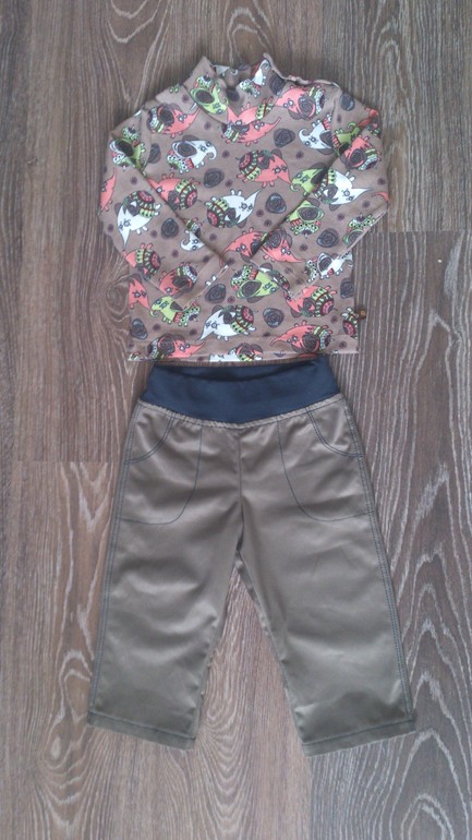 А это штанишки хочу показать, уже носим вовсю. Из футера 2-х нитки с лайкрой, выкройка из Оттобре 1/2013.