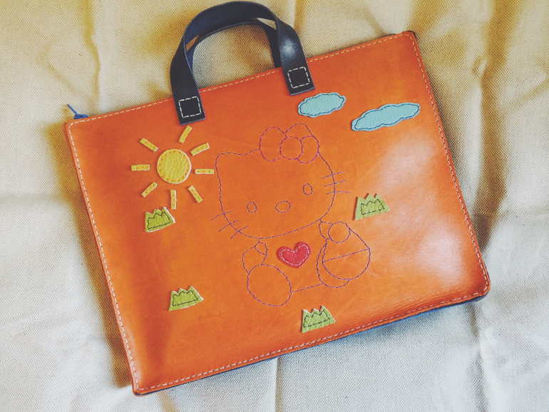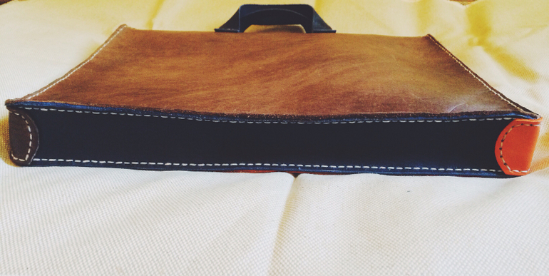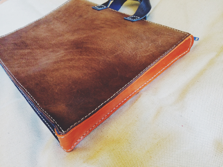 Изделия из кожиКожаная папка с вышивкой и аппликацией. Выполнена из разноцветной полы. Сочетание 3х цветов-апельсин,коричневый,синий(не учитывая аппликацию). Полностью сшита вручную. Возможны другие цвета,вышивка и т.д.(под заказ) формат А4