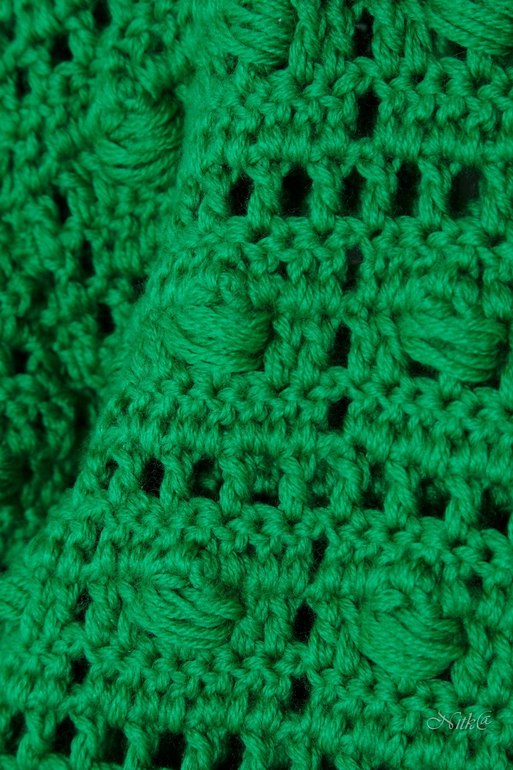 я конечно не знаток по вязанию :)) скорее любитель, но это похоще крючком вязано.Похоже это несколько петель (полагаю их делают как для "травки") в которые проходит столбик с накидом.очень интересный узор :)