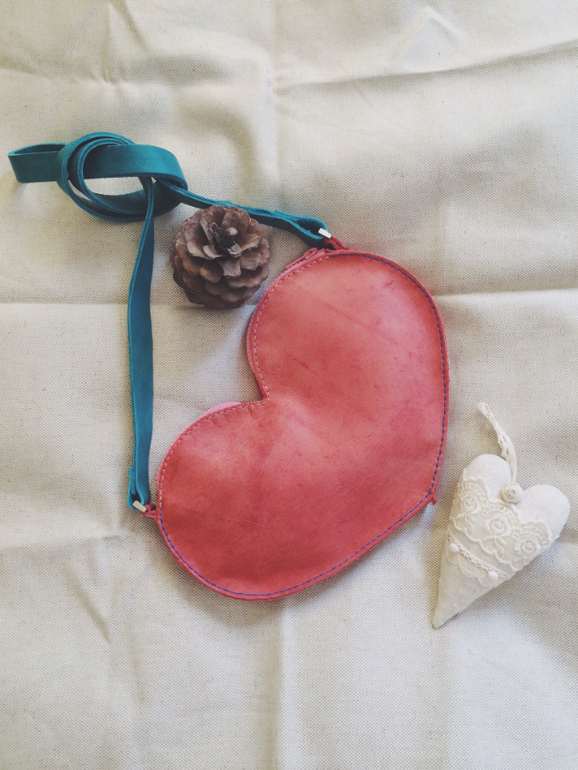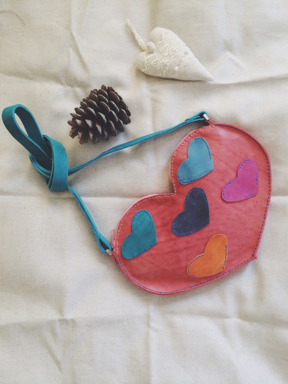 Маленькая кожаная сумочка в виде сердца. Ширина 28см, высота 15см(в серединке). Выполнена из разноцветной качественной полы. Полностью ручная прошивка. Длинный ремень.