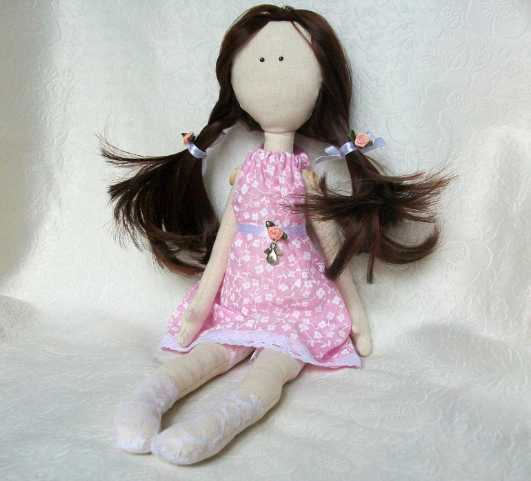 Нежное чудо по имени Софи. Трогательная и воздушная девочка станет верной подругой или впишется в любой интерьер..Она одета в лёгкое платьишко,кружевные панталончики и носочки.Кукла сидит с опорой,ручки двигаются. Высота 40 см.