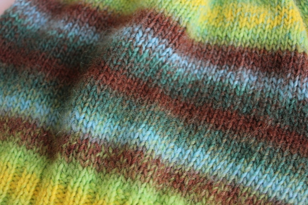 Пряжа YarnArt Magic 100% шерсть, 200 м/100 гр. Цвет пряжи оказался не совсем таким, как я ожидала, слишком много коричневого и ни капли оранжевого (как было на картинке при заказе), но я все равно довольна. На весь комплект ушло чуть больше 1,5 мотков.