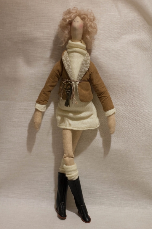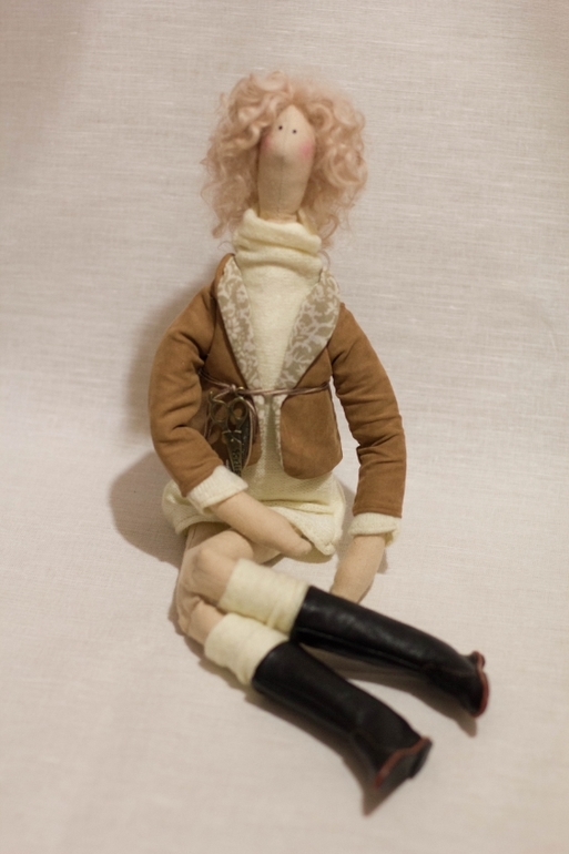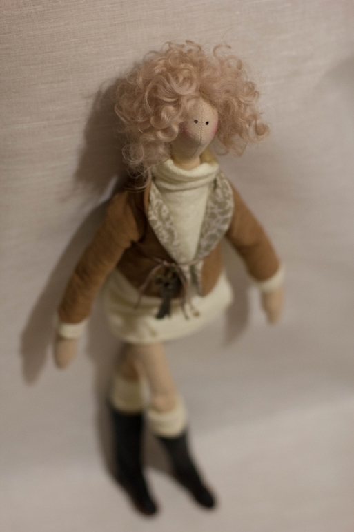 Ну как же мало, очень мало свободного времени!!! Но я все же дошила эту девочку. Куклу шила к Дню рождения моей старшей сестры Наденьки. По профессии она парикмахер. ДР у нее 27 числа. Сегодня эта девочка помчится утренним поездом в Крым к своей обладательнице. Очень надеюсь сестре понравится подарочек)