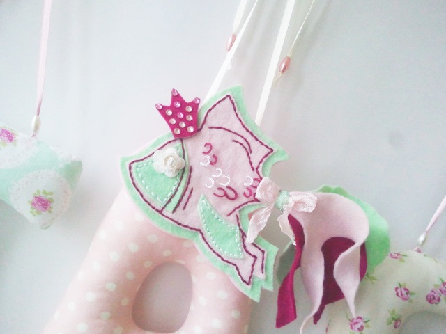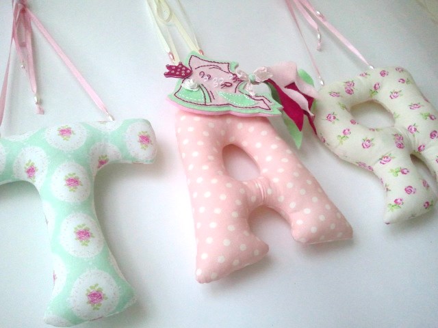 Декор, витражи.Нежное Имя из ткани для милого создания, декорированное "золотой" рыбкой:). В реальности цвета несколько насыщеннее!