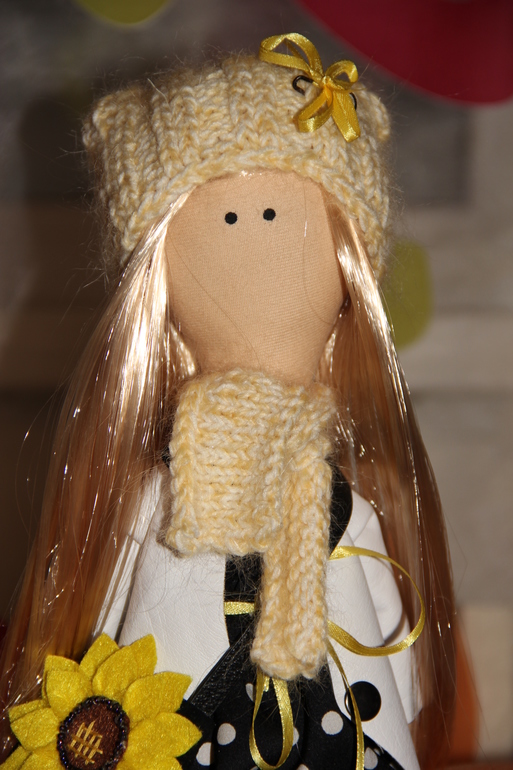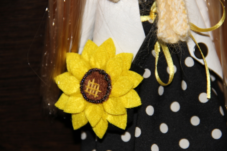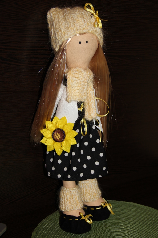 Олеся - студентка...38 см, стоит и сидит с опорой, одета в легкое платье и курточку, утеплена в вязанную шапочку и шарф, на ногах замшевые туфли, из аксессуаров - замшевая сумка с большим подсолнухом из фетра.