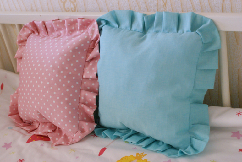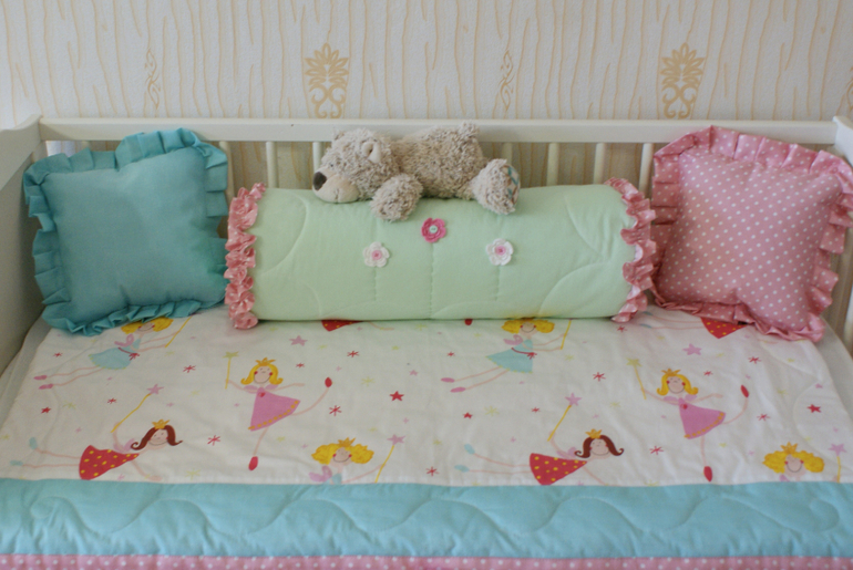 3. Декоративные подушки: 2 квадратные (двусторонние - с феечками и цветная сторона) - 30*30 и подушка-валик 60см в длину и 18см диаметр)))