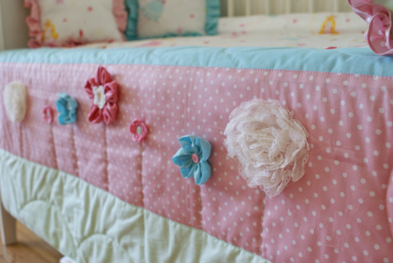 1. Одеялко-покрывало стеганное с элементами пэчворка и объемными цветами - 110*150