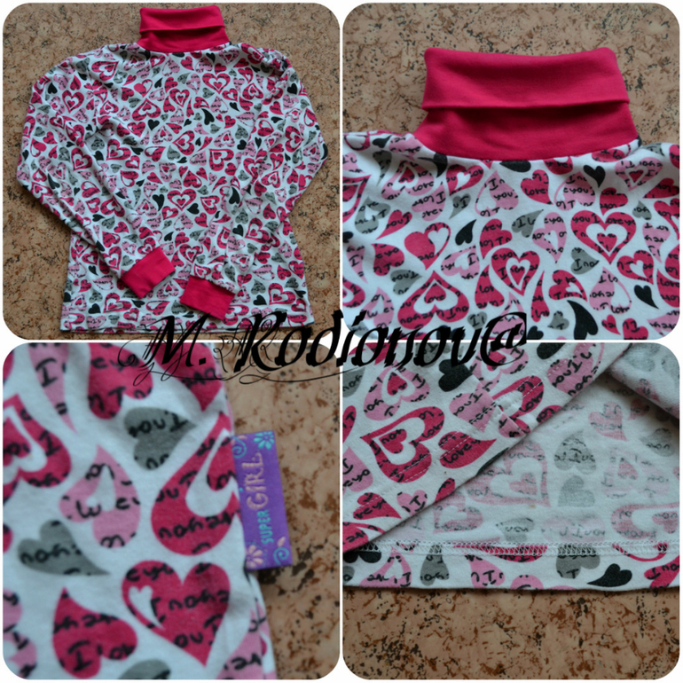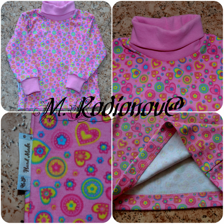 Вот такие водолазочки для девочек сшились у меня на заказ. Ткань - интерлок и кашкорсе. Больше фото под катом.