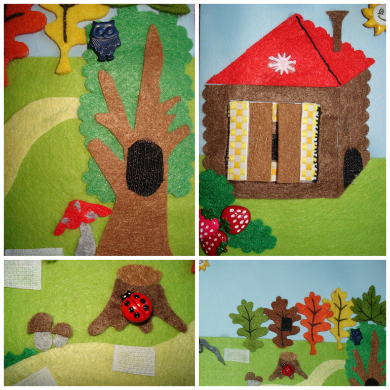"Лес" - для сказок "Репка", "Колобок", "Маша и медведь". (Буду шить постепенно героев).