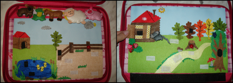 Одно я использовала для фермы, другое - для леса. Сверху/ снизу есть лента для крепления героев.
