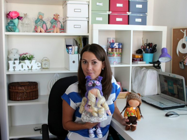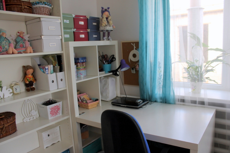 Здесь мне очень уютно работать, подбирать ткани и декор для моих девочек.