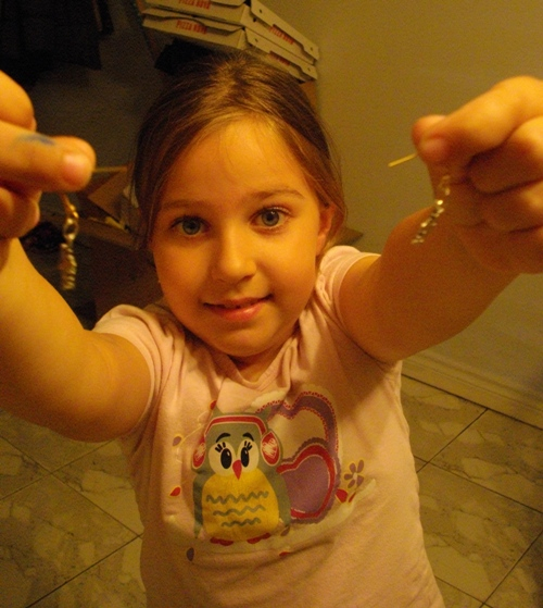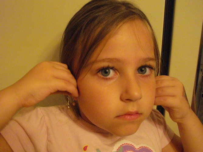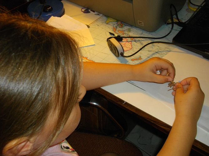 Решили начать с самого простого. Но фишка в том, что я и пальцем не пошевелила, чтобы ей помочь с этими сережками. Она все сделала сама! Пинцетом раздвинула соединительное колечко, пальчиками поставила в него выбранные подвески и основу, потом также пинцетом сама их закрыла! С первого раза. Я немножко удивлена, все-таки какая никакая, а сноровка нужна. Будем несомненно двигаться дальше!