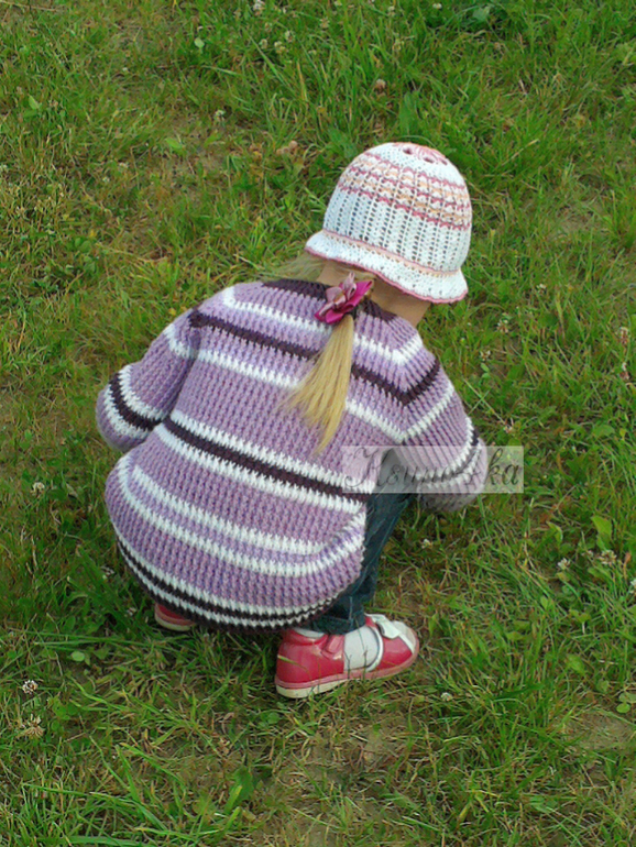 Жакетик вязала из разных ниточек - Нако Беби (белые, светло-сиреневые), Пехорка "Кроссбред Бразилии" (бордовые и сиреневые, в две ниточки). Крючок №3.