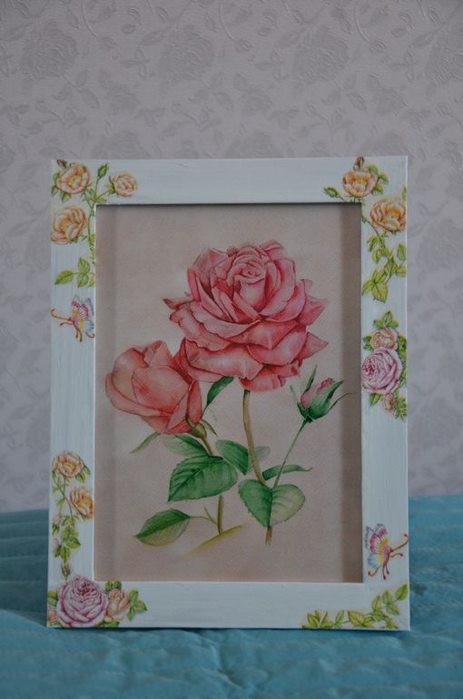 ДекупажШкатулка для мелочей и рамочка, для себя любимой. Идею подглядела у одной девочки с ББ, вернее шкатулку то я сделала, а вот рамочку задекупажить не сразу сообразила:).